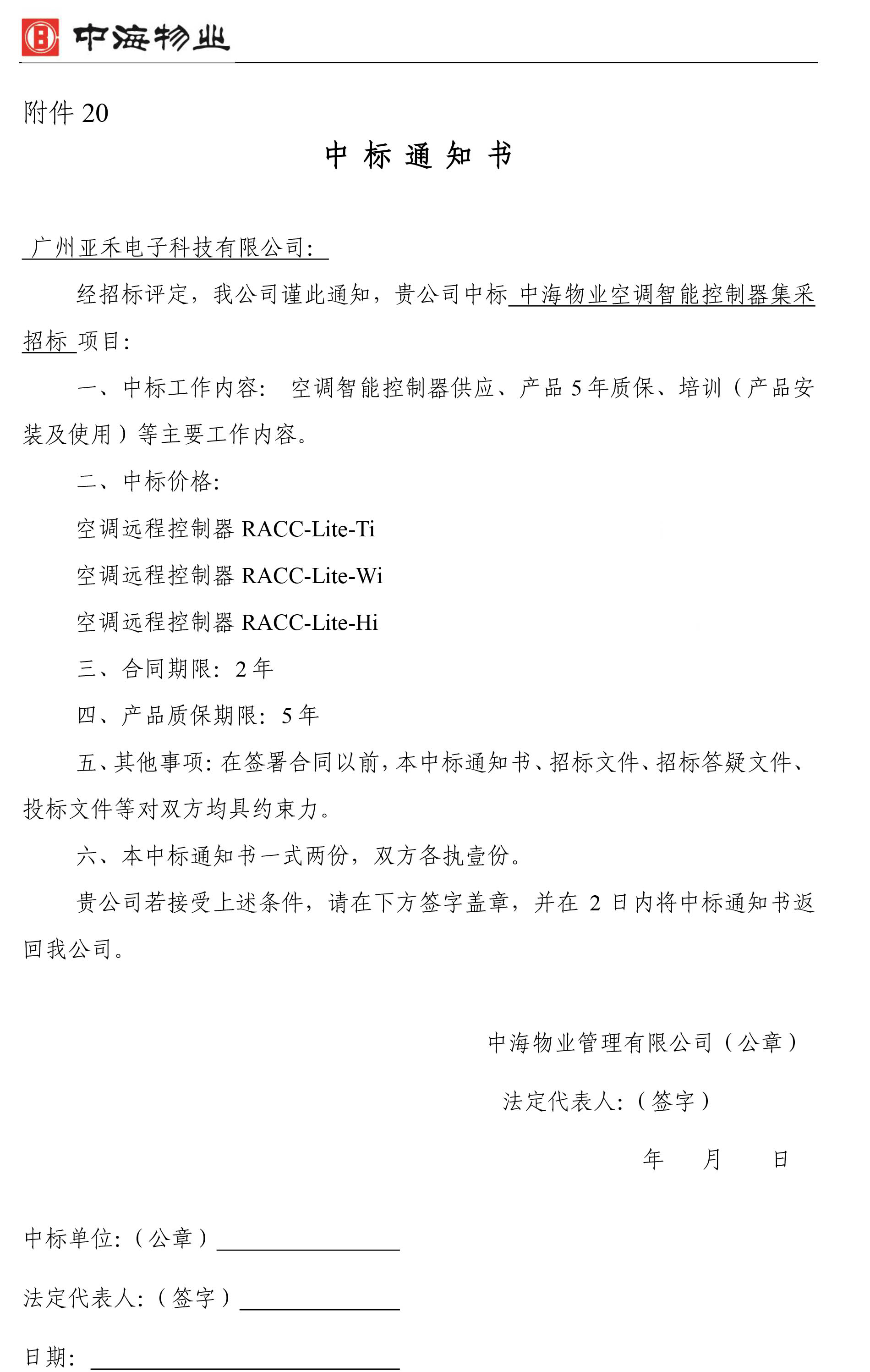 經(jīng)評(píng)審廣州派谷電子旗下產(chǎn)品亞禾空調(diào)智能節(jié)能遠(yuǎn)程空調(diào)控制器RACC中標(biāo)成交